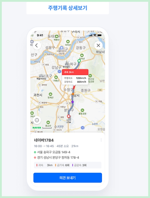 - 평소 운전할 때 내가 과속을 많이 하는지, 브레이크를 급하게 밟는지 체크 가능!