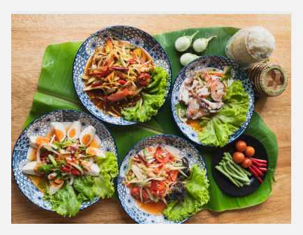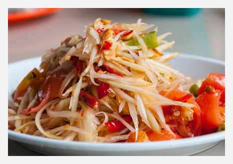 동부 지역의 솜땀은 파파야 샐러드로, 신선하고 산뜻한 맛이 매력적입니다. 라임, 칠리, 땅콩을 넣어 만들며, 태국 전역에서 사랑받고 있습니다.